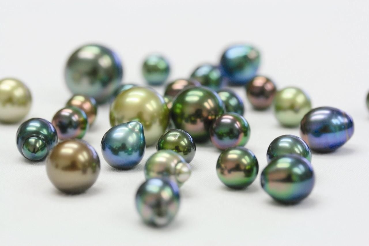 These pearls are traditionally called "black," but their colour can range from a metallic silver, to the colour of graphite. And within this range of colours they can have bluish, purplish, or greenish overtones.
